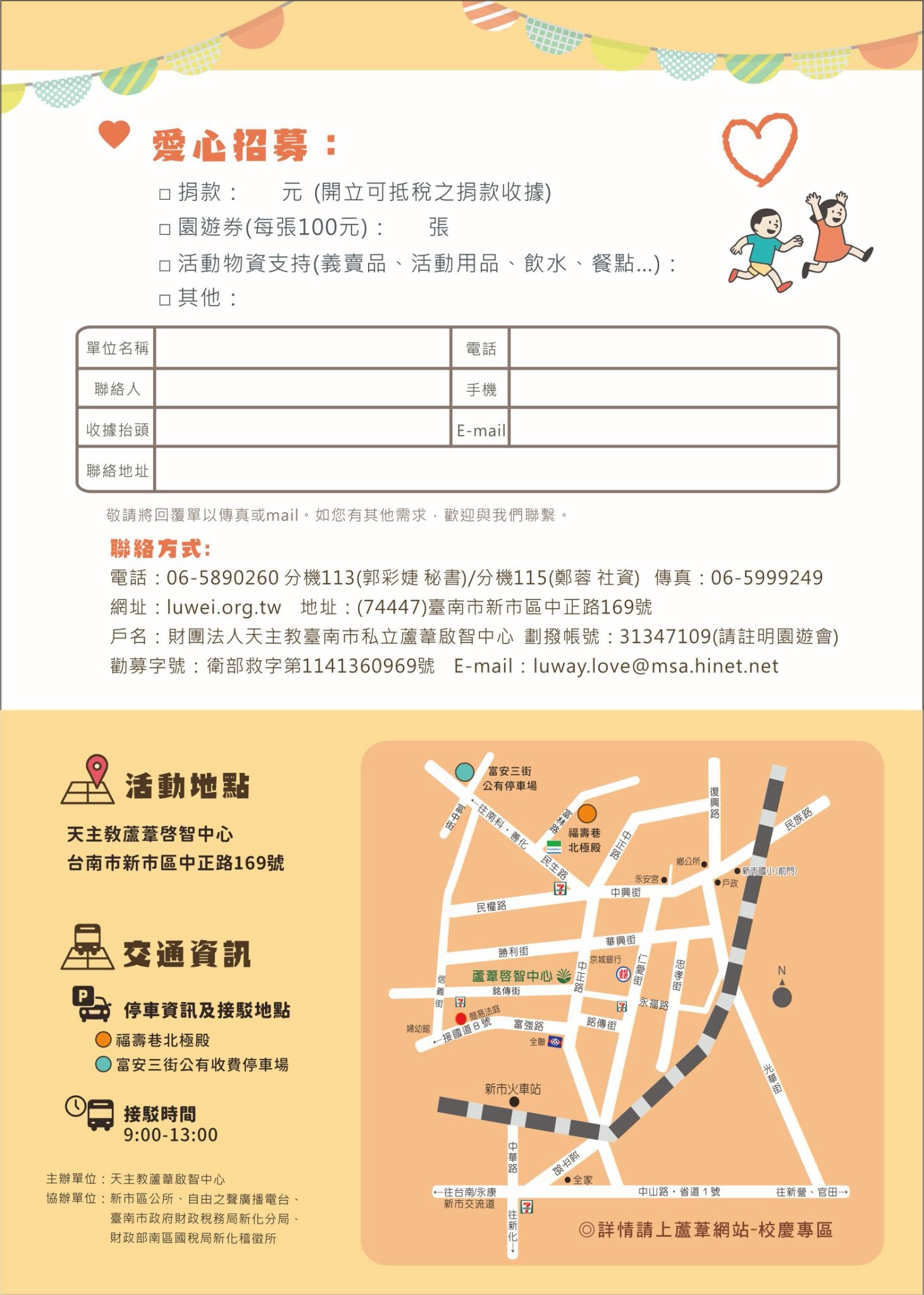 蘆葦年度唯一一場對外募款活動,以愛心園遊會方式辦理。