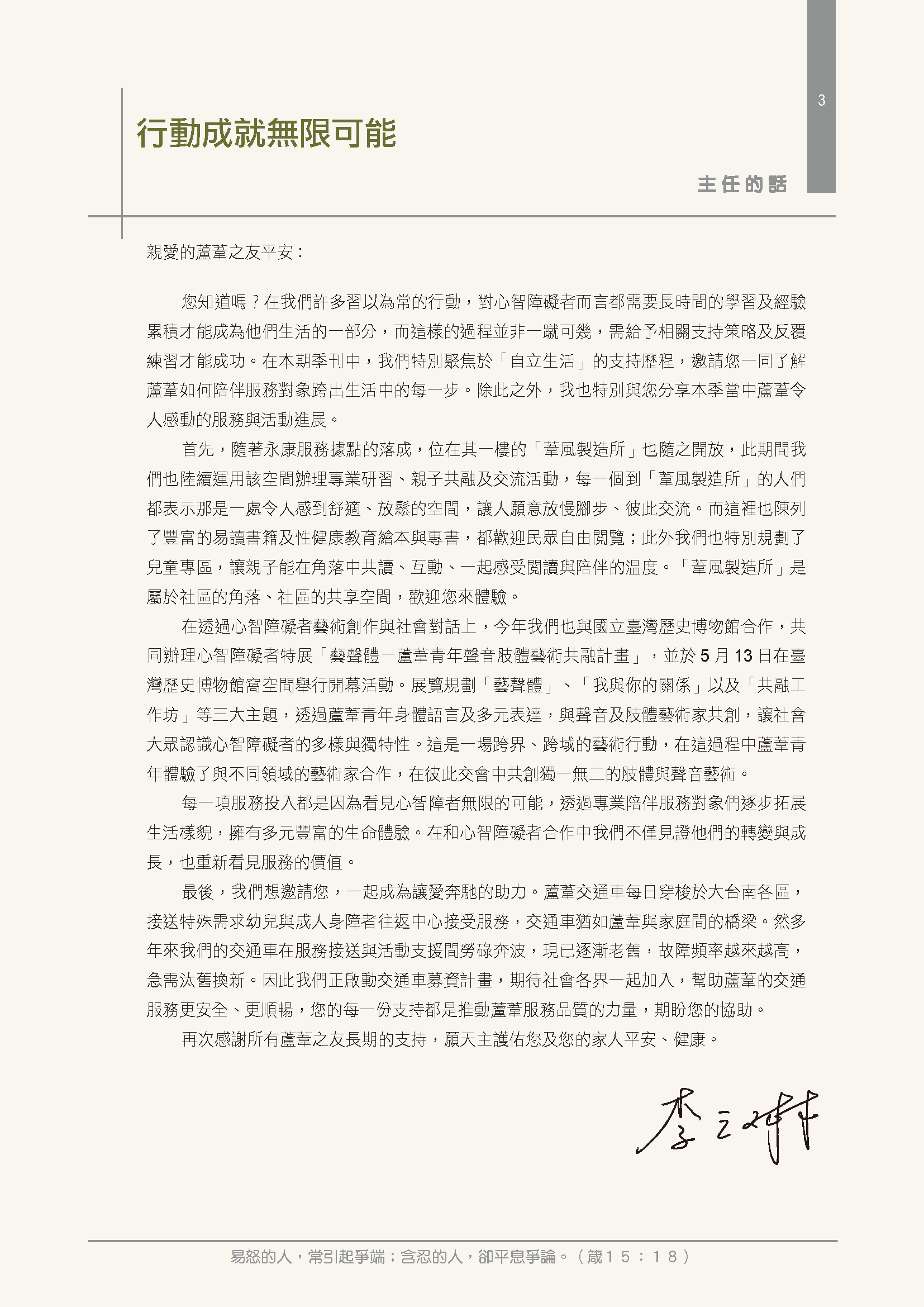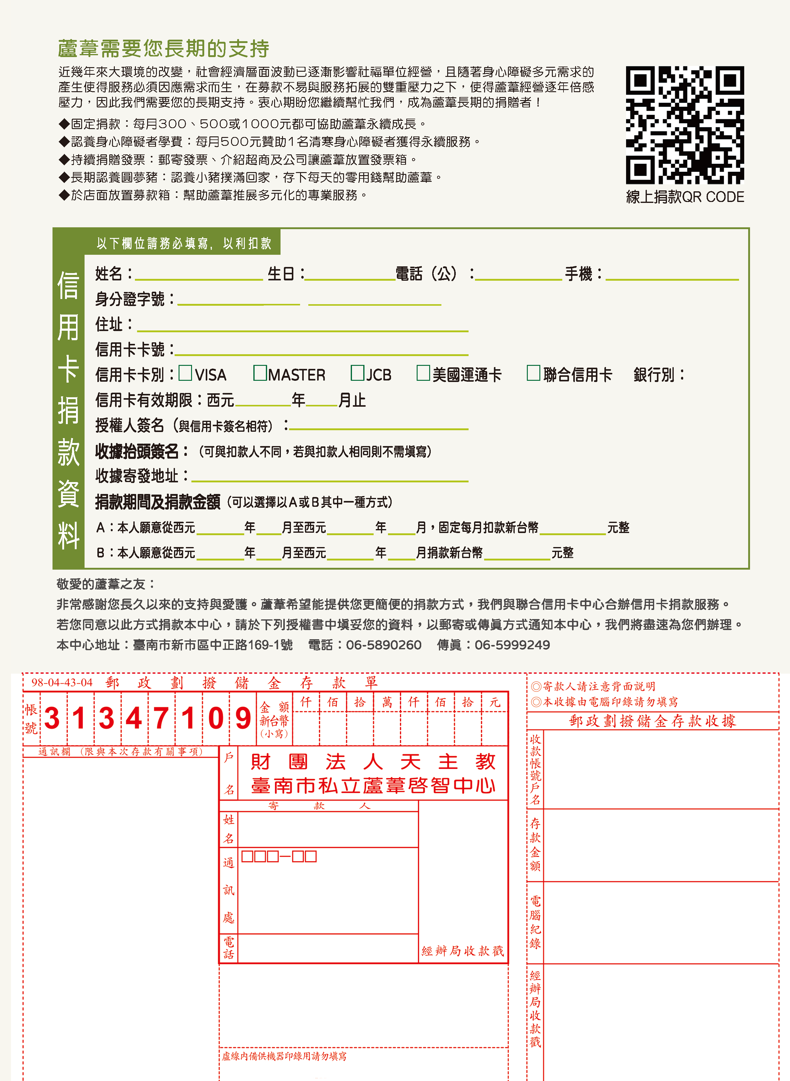 財團法人天主教 臺南市私立蘆葦啟智中心