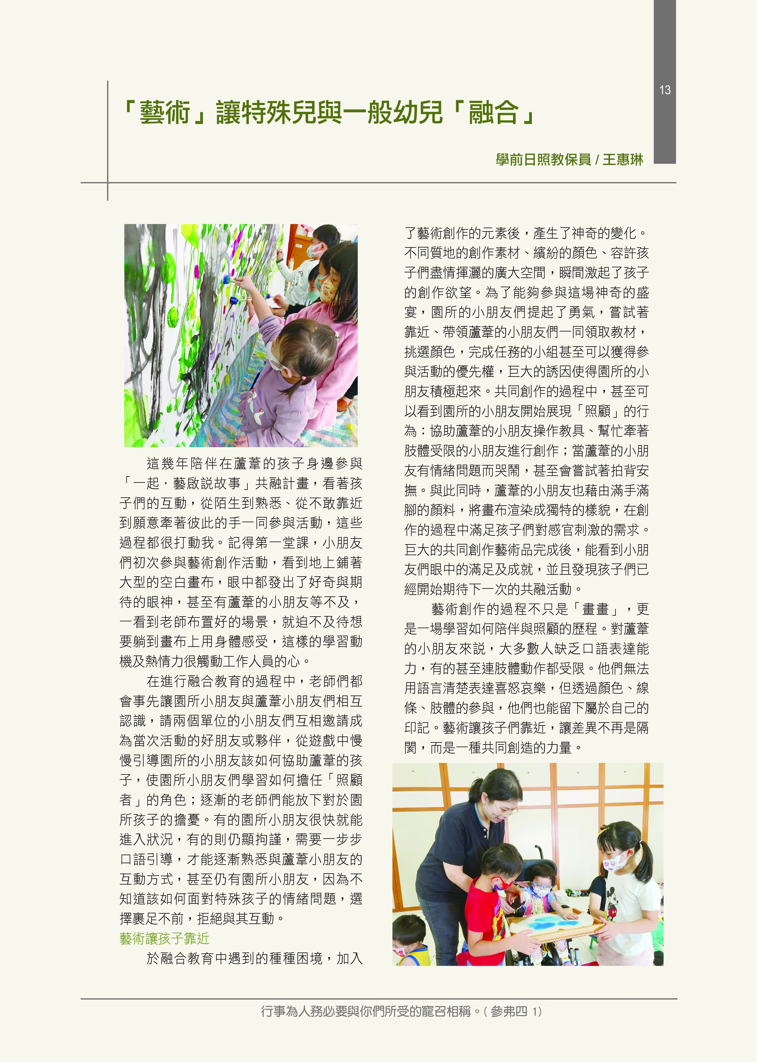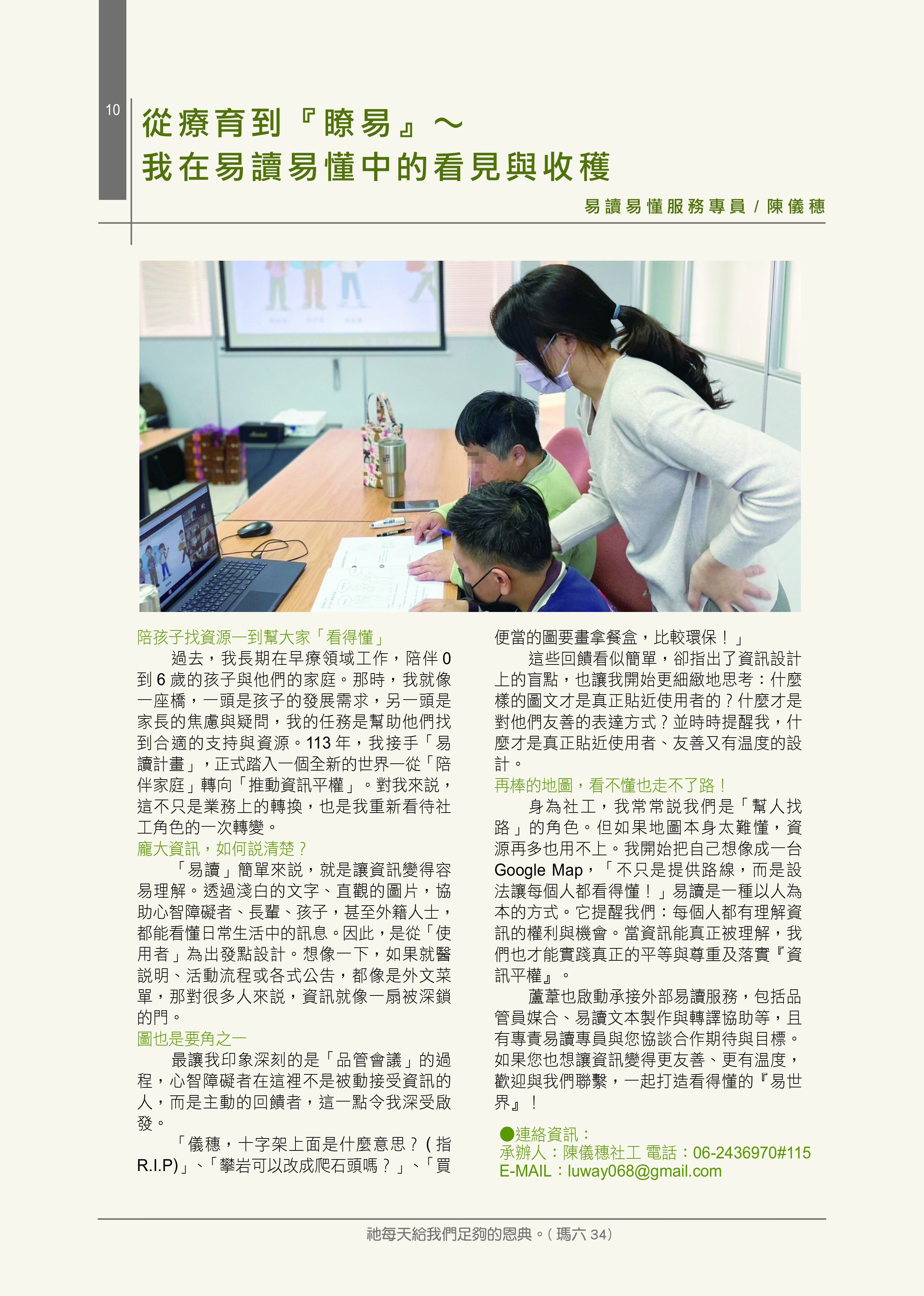 財團法人天主教 臺南市私立蘆葦啟智中心